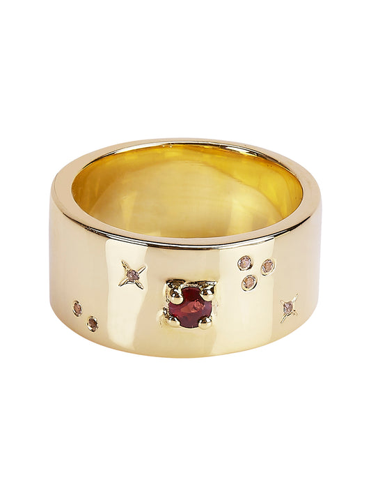 Resist Captivity Cigar Band Ring in 14ct Gold Vermeil with Garnet and White Topaz